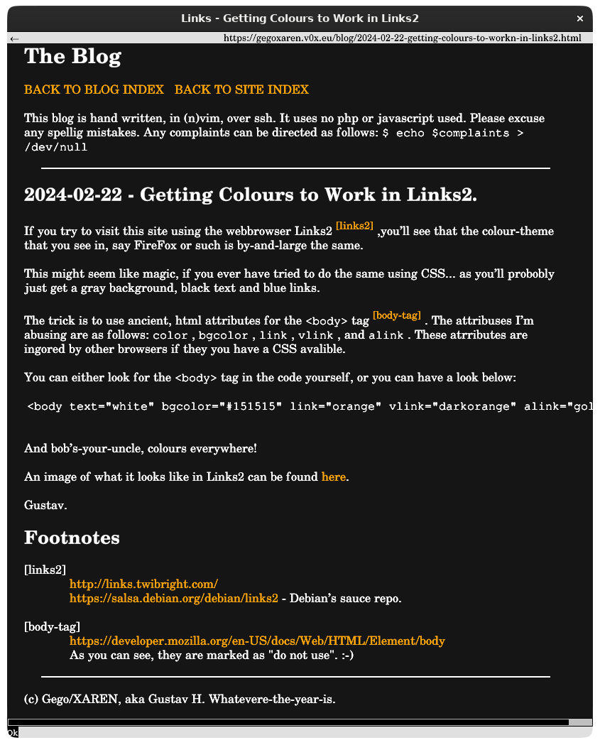 If you try to visit this site using the webbrowser Links2 [links2] ,you'll see that the colour-theme that you see in, say FireFox or such is by-and-large the same.